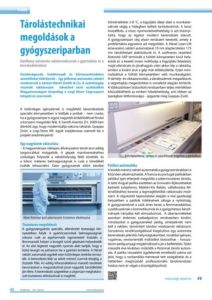 A kisebb méretű raktári automaták a gyógyszertárakban is kitűnően alkalmazhatók. A francia és portugál patikákban például igen elterjedt megoldás a páternoszteres tárolás. A tatai Angyal patika esetében az innovatív fejlesztéseket kedvelő tulajdonos, Maklári-Kis Balázs, vállalkozása fellendítéséhez kereste a legmegfelelőbb raktározási módszert. A cégvezető tapasztalatai alapján a mai gazdasági helyzetben a patikák túlélésének záloga a nyitottság. A gyógyszereknél központilag meghatározott, szűk árrés kevés a fennmaradáshoz, a patikusoknak a kozmetikumok és a gyógyhatású készítmények irányába kell elmozdulniuk. A sikertermékeket azonban érdemes szabadpolcos rendszerben kínálni, mindazokat a gyógyszereket pedig, amelyeknek nem kell a reklám, tömörített tárolási módszerrel raktározni. Sorszámos vevőkiszolgálással kiegészítve egy automata berendezés jelentős helymegtakarítást, továbbá igényes, rugalmas, vevőorientált működést biztosíthat – hosszútávon pedig anyagi megtérüléssel is jár a befektetés. Tatán második éve kiválóan működik a Rotomat tároló automata. A patika visszatérő ügyfeleinek emelkedő száma azt jelzi, hogy a sorbanállás-mentessé tett szolgáltatás és a háttérben meghúzódó professzionális tárolórendszer hatása nem ér véget a kiszolgálópultnál.