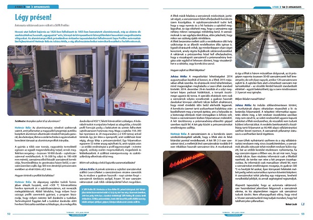„A liftek másik feladata a szerszámok módosítását, javítását végző, a szerszámüzem felett elhelyezkedő korrekciós üzem kiszolgálása. A sajtolószerszámokról tudni kell, hogy a nagy nyomás és a hő hatására a sajtolóél meglágyulhat, ez úgy előzhető meg, hogy a szerszámra egy néhány mikron vastagságú nitridréteg kerül. A szerszámoknak is van egyfajta életciklusa, előre jelezhető, hogy mikor van szükség újabb nitridálásra. A liftek beszerzése mellett szólt a rendelkezésre álló hely szűkössége és az állandó rendelkezésre állás igénye is. Egyedi elvárásaink voltak, így mindenképpen olyan céget kerestünk, amely régóta foglalkozik raktárrendszerekkel. A raktárnak a présüzemhez közel kell elhelyezkednie, hogy a visszakapott szerszámról a présmaradvány levágása után egyből el lehessen dönteni, hogy visszakerülhet- e a raktárba, vagy korrekcióra szorul.”